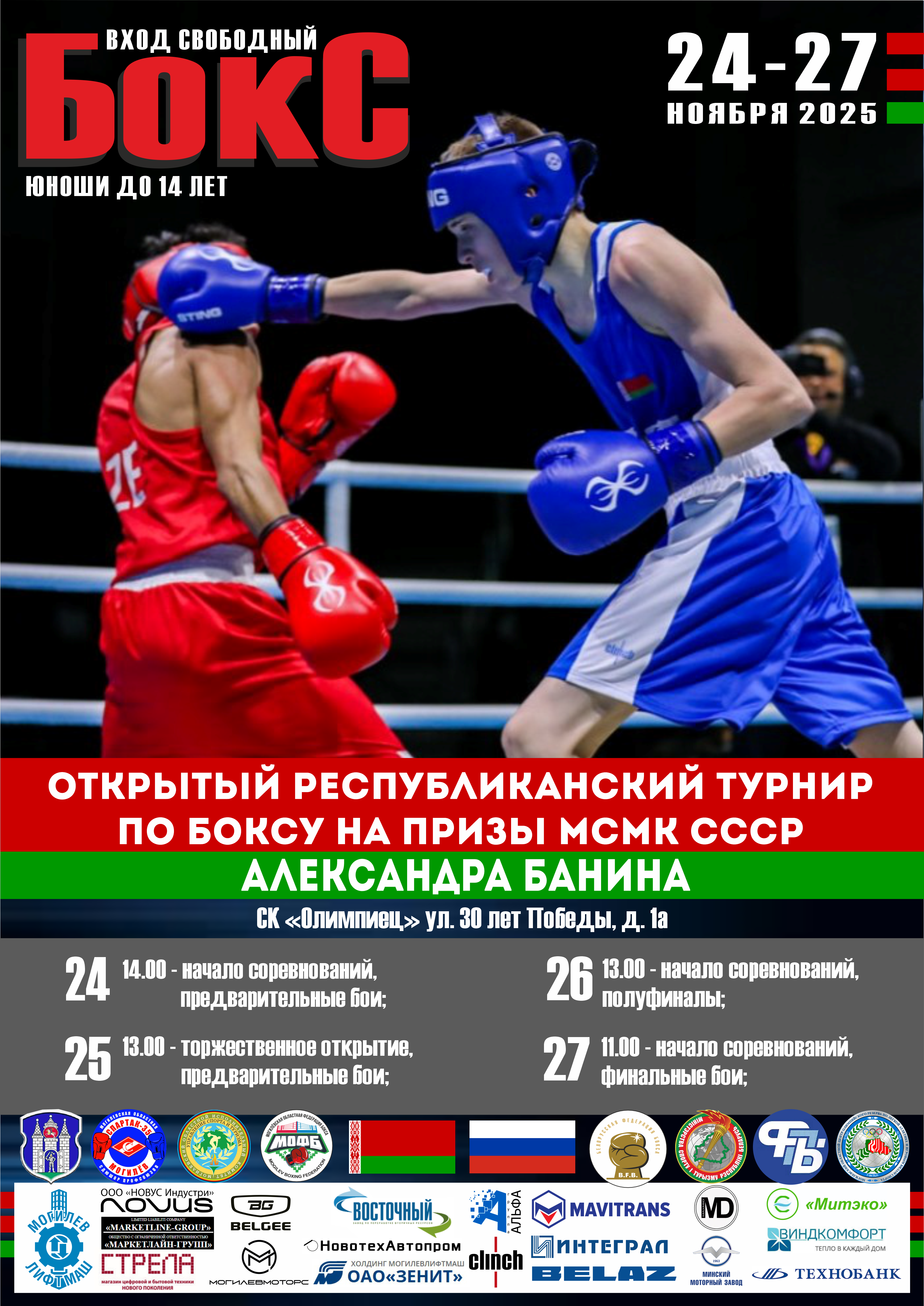 Задать вопросС 23 по 27 ноября в Могилеве в СК "Олимпиец" прошел открытый Республиканский турнир по боксу на призы МСМК СССР Александра Банина. 142 боксера 2012-2013 годов рождения из городов Российской Федерации: Брянска, Рославля, Калининграда; городов Республики Беларусь:Минска, Бреста, Витебска, Гомеля, Ветки, Барановичей, Костюковичей, Полоцка, Бобруйска, Славгорода и Могилева сражались за награды турнира!