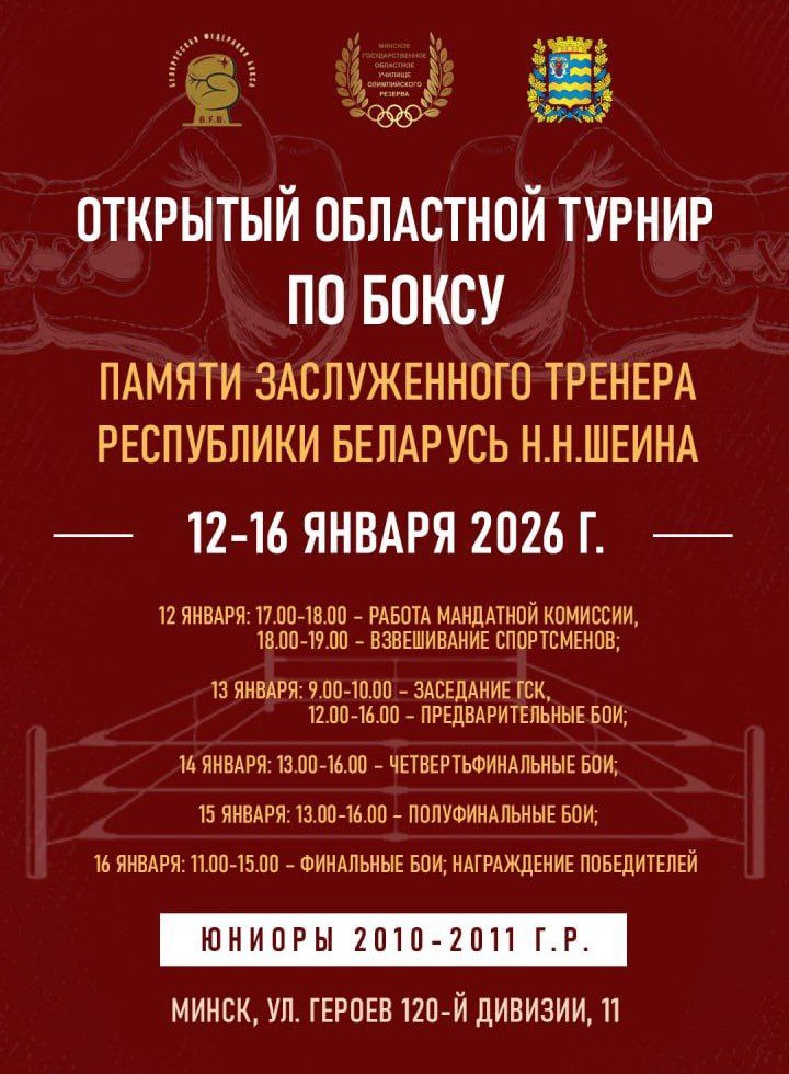 В Минске с 12 по 16 января 2026 года проходил открытый областной турнир по боксу памяти Заслуженного тренера Республики Беларусь Н.Н. Шеина.